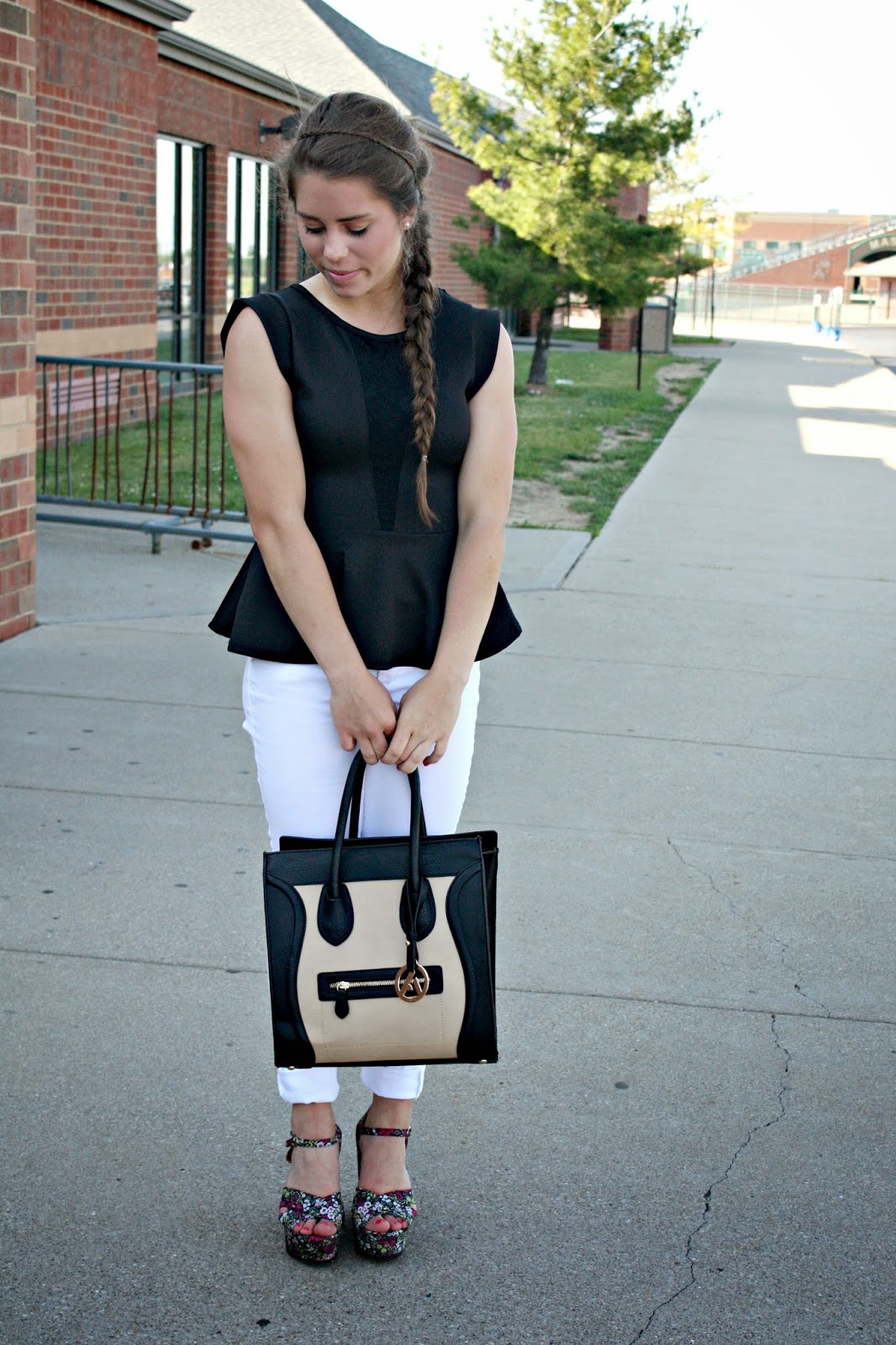 I'm a huge fan of black and white no matter the time of year, but especially for spring. The juxtaposing colors really make the outfit more eye catching than usual. Not only that, neutrals give me extra freedom to accessorize with pops of color, or in this case- floral wedges. I'm all about wedges in the summertime. It adds a little height and though they don't look like it, they're super comfortable and easy to walk in.